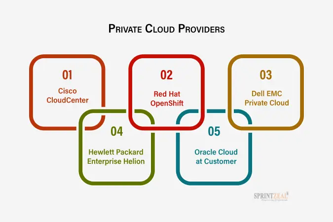 In 2026, private cloud solutions will be very popular as companies look for greater flexibility, security, and control. Offering top-tier services for businesses, AWS Outposts, Microsoft Azure Stack, Google Anthos, IBM Cloud, and Oracle Cloud are at the frontline. Others, such as Red Hat, Dell, and VMware, offer tailored solutions for various business requirements. These service providers are affecting the direction of private cloud computing with their data security, seamless hybrid cloud assimilation, and amazing performance.