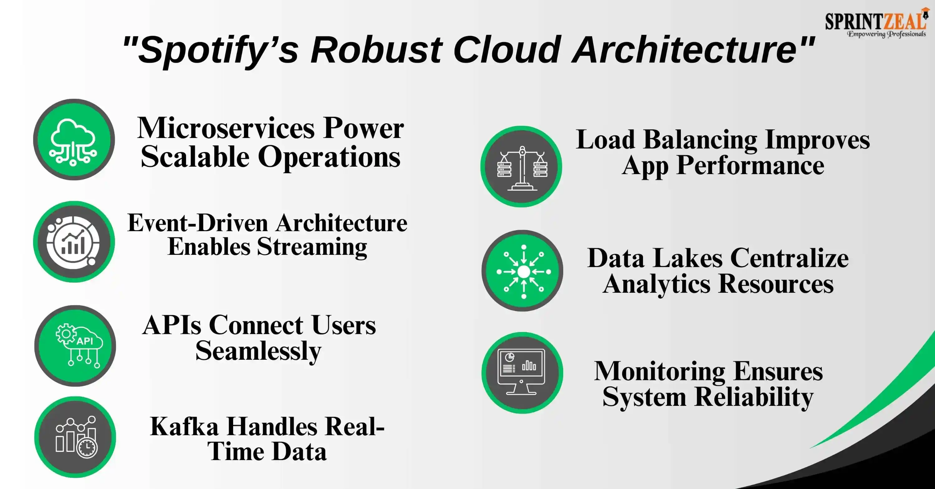 Spotify’s cloud architecture is built around microservices and Kubernetes, making it highly resilient and scalable.