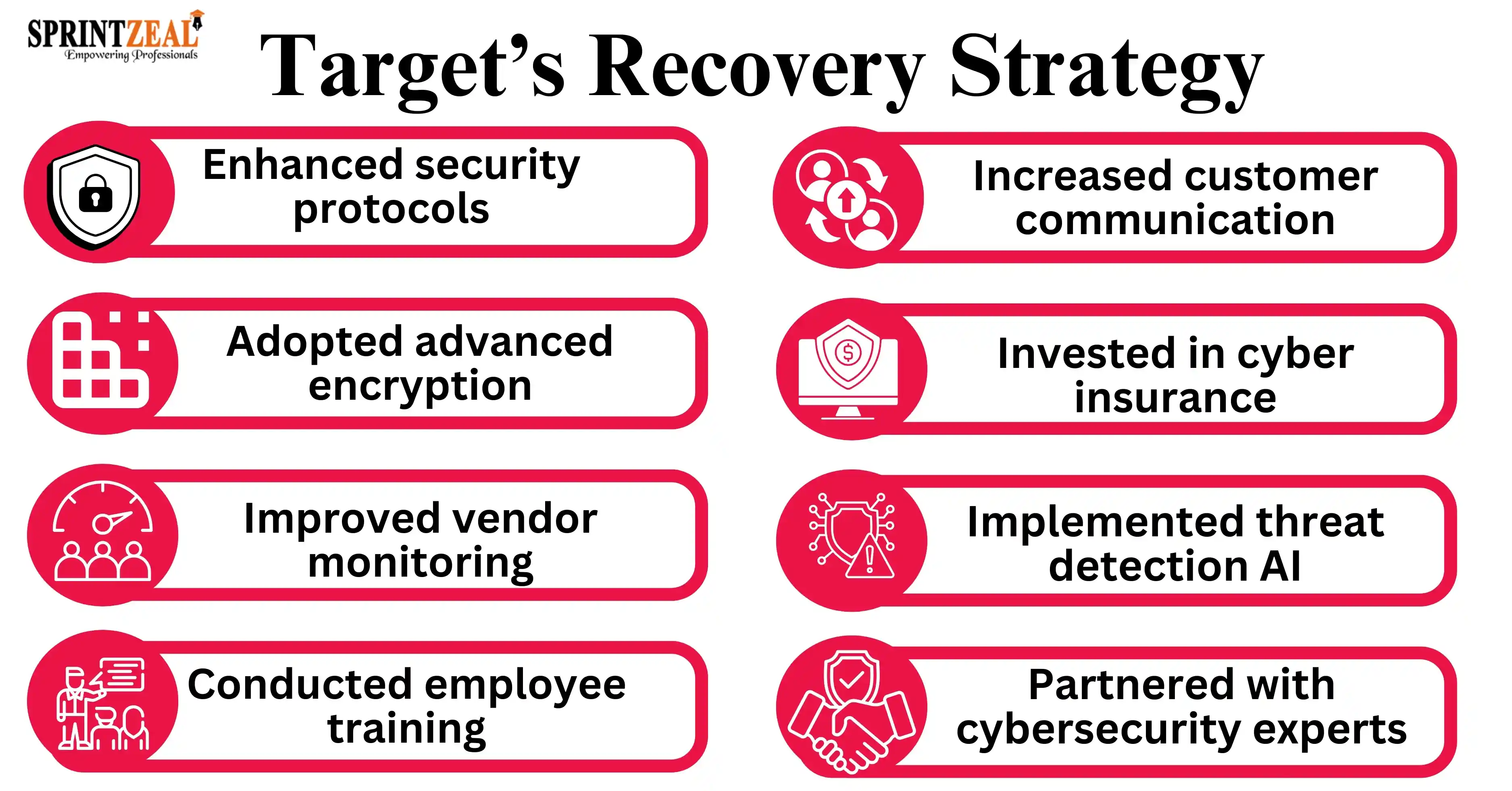 It takes advanced knowledge and expertise to comprehend and stop cyberthreats like the Target cyberattack. We at Sprintzeal provide recognized cybersecurity certification courses to keep professionals and companies ready. Our courses, taught by experts in the field, cover topics like risk assessment, vulnerability management, and advanced threat detection.
